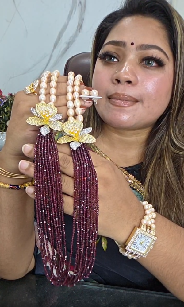 💎 ফুল সেট (Dubai Garnet + Rice Pearl + Blue Sapphire + Lotus Tassel)